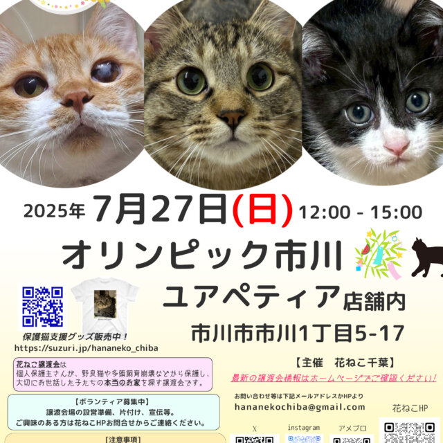 花ねこ譲渡会は、個人保護主さんが保護して大切にお世話した猫の「本当のお家」を探す譲渡会です。