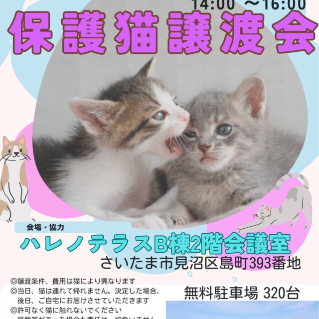 【さいたま市見沼区】7/6(日)ハレノテラス保護猫譲渡会