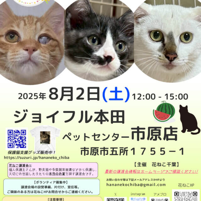 花ねこ譲渡会は、個人保護主さんが保護して大切にお世話した猫の「本当のお家」を探す譲渡会です。是非一度遊びに来てください。