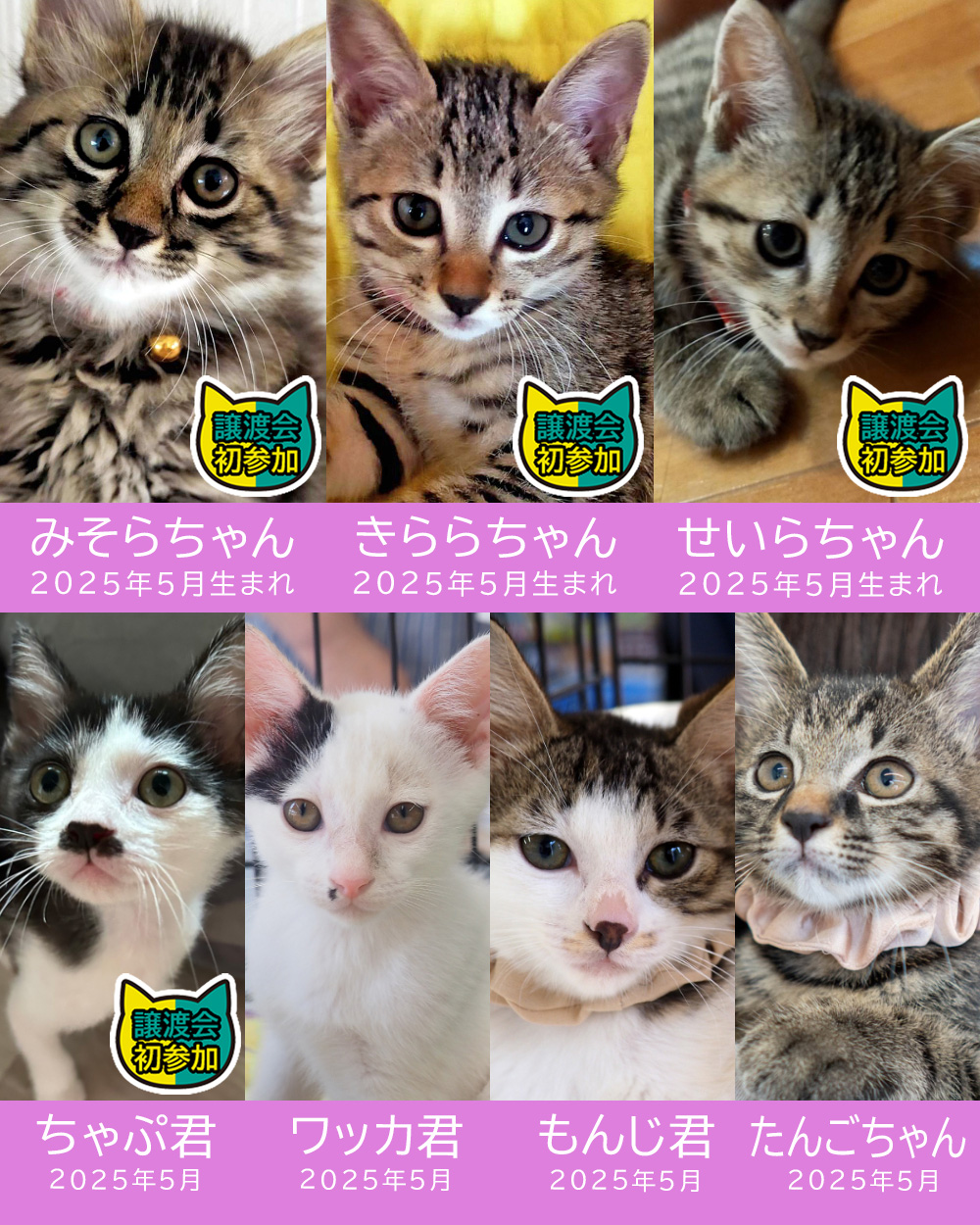 健康で参加予定になっている子猫も急遽お休みになる場合があります。