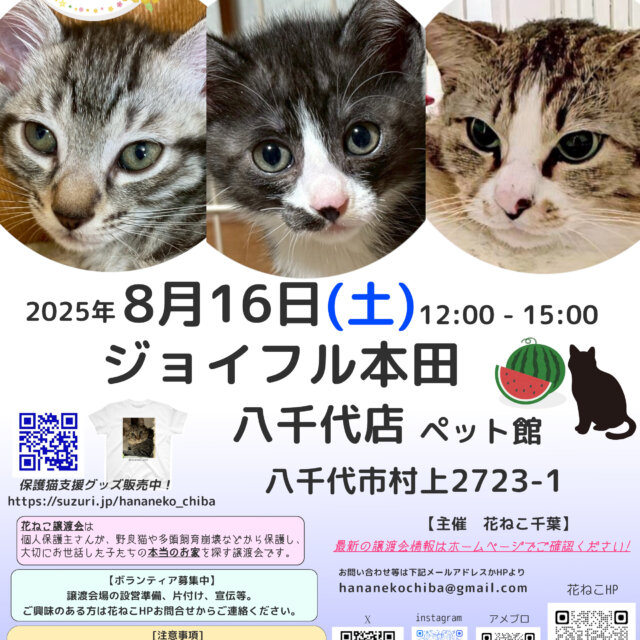 花ねこ譲渡会は、個人保護主さんが保護して大切にお世話した猫の「本当のお家」を探す譲渡会です。是非一度遊びに来てください。