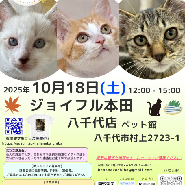 花ねこ譲渡会は、個人保護主さんが保護して大切にお世話した猫の「本当のお家」を探す譲渡会です。