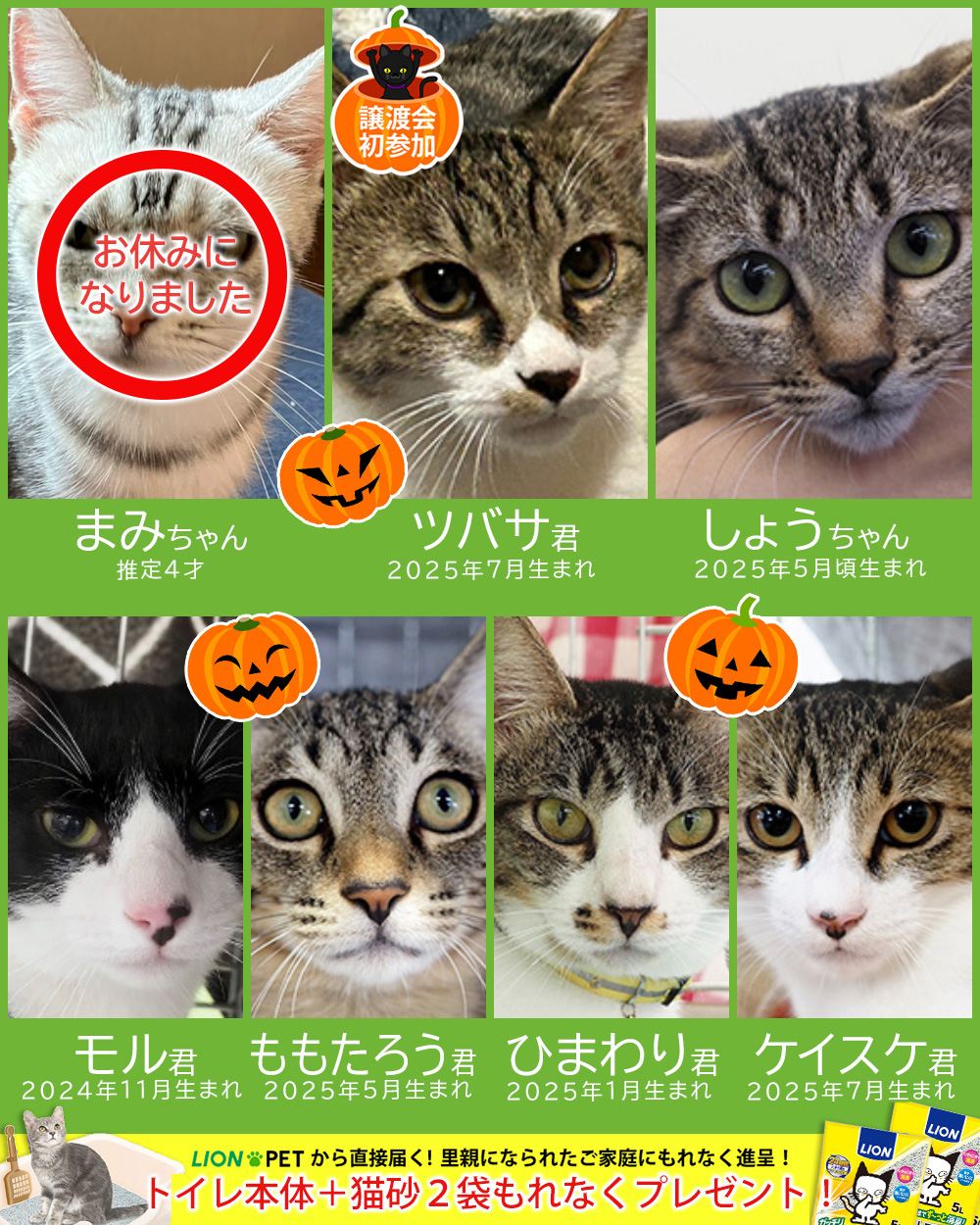 参加調整中の子猫が数匹いますのでもう少し増えるかも?