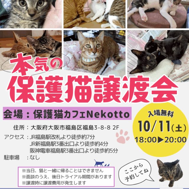 保護猫カフェNekotto様にて開催します。
