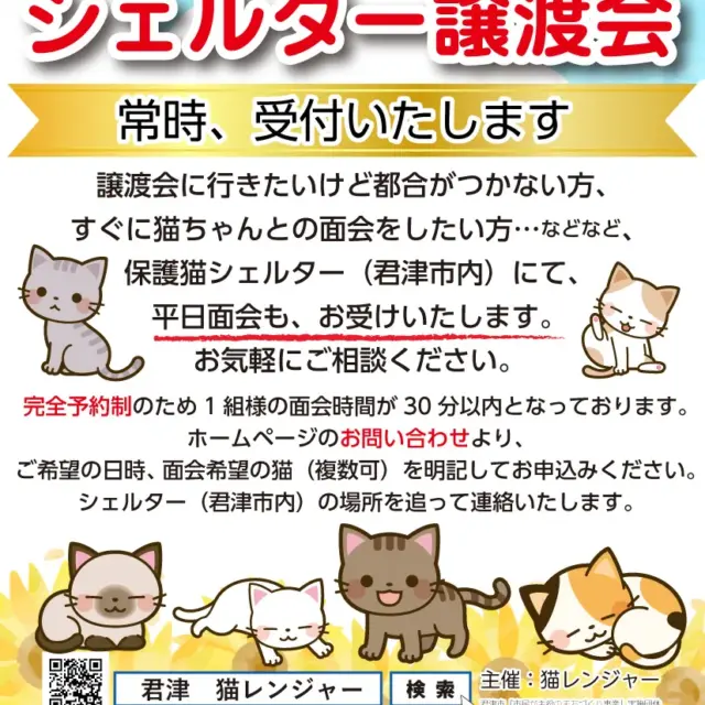 シェルター譲渡会も随時受付しています。