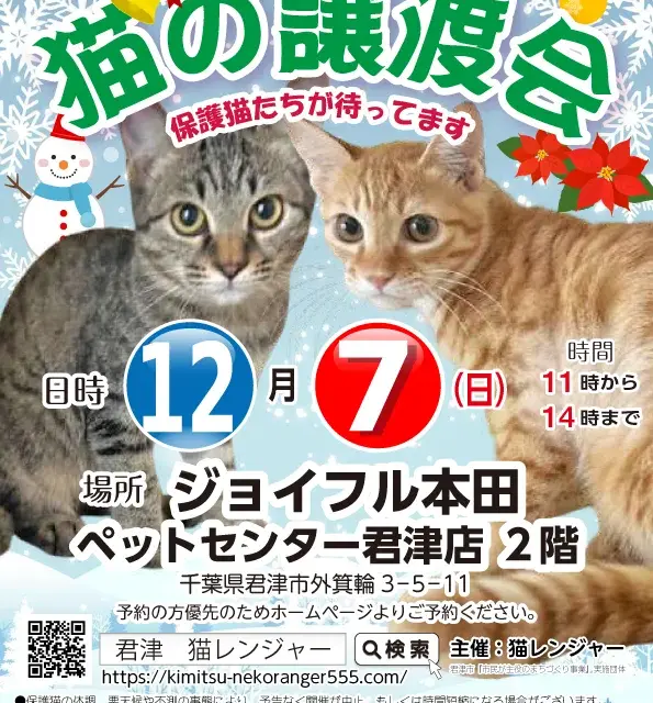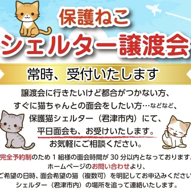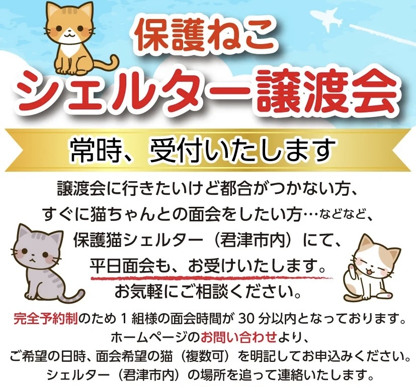 保護猫ハウスの譲渡会随時受付しています。お気軽にご連絡ください。