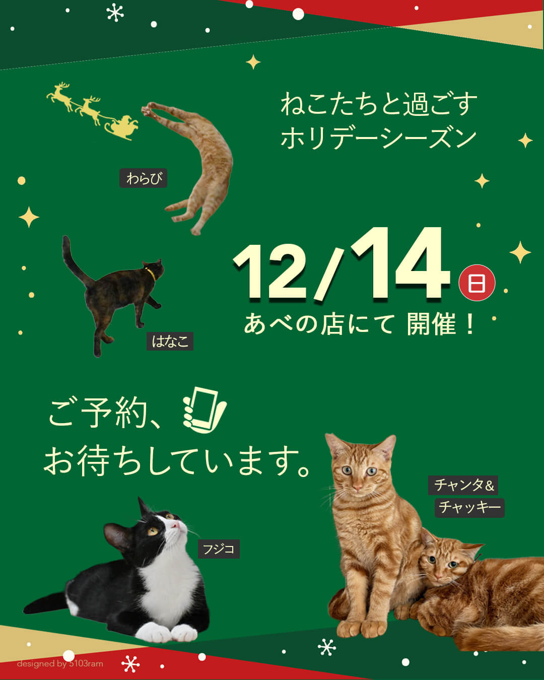 ご予約不要、開催時間内にお気軽にお越しください^ ^