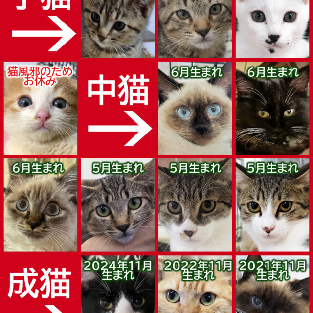 ※いろはちゃん、いなりちゃん、チエちゃんは猫風邪のためお休みとなりました。