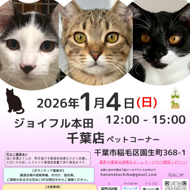 花ねこ譲渡会は、個人保護主さんが保護して大切にお世話した猫の「本当のお家」を探す譲渡会です。是非一度遊びに来てください。