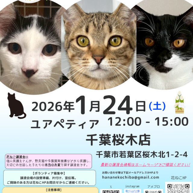 花ねこ譲渡会は、個人保護主さんが保護して大切にお世話した猫の「本当のお家」を探す譲渡会です。是非一度遊びに来てください。
