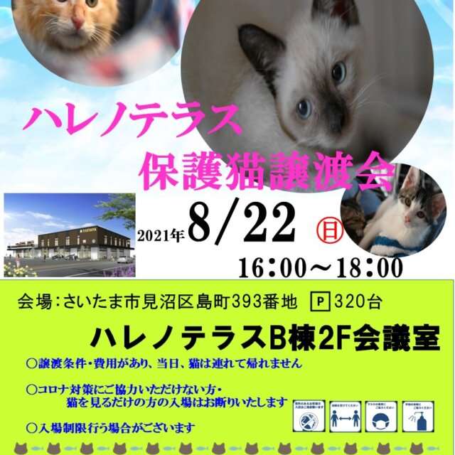 8/22 さいたま市 ハレノテラス保護猫譲渡会
