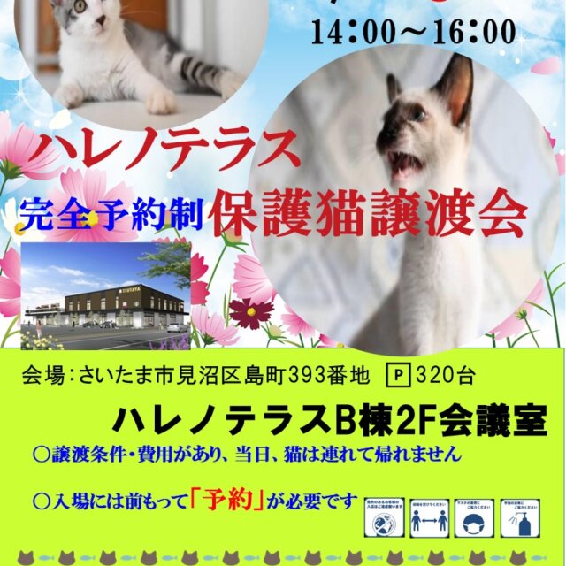 【完全予約制】9/5(日)ハレノテラス保護猫譲渡会