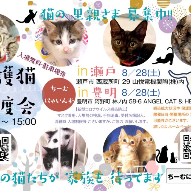 豊明・瀬戸 同時開催!子猫だらけの譲渡会~ちーむにゃいんず2021年8月28日