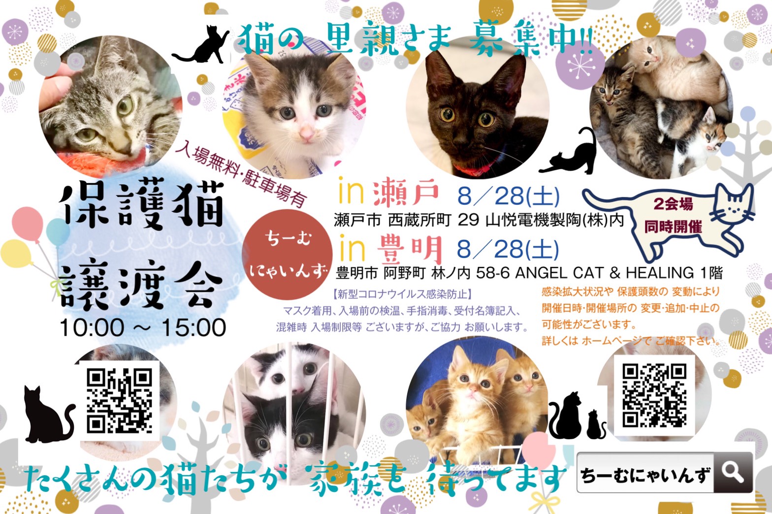 瀬戸・豊明 同時開催!子猫だらけの譲渡会~ちーむにゃいんず2021年8月28日