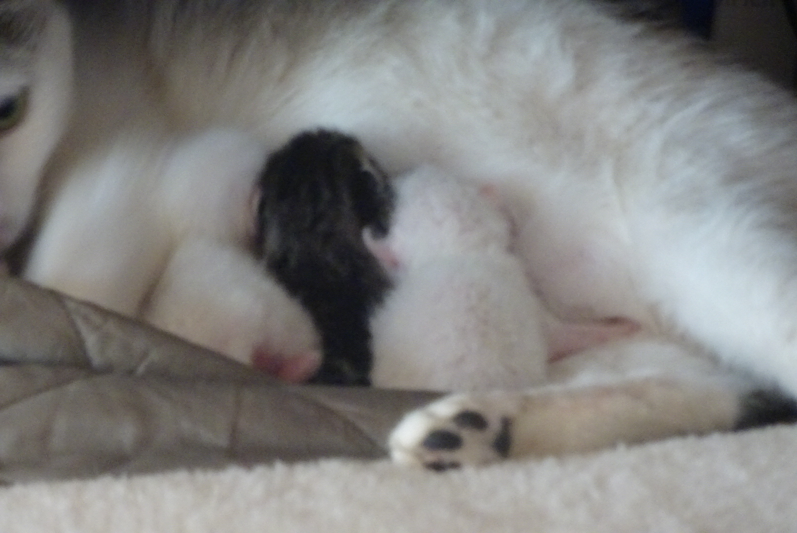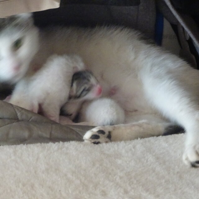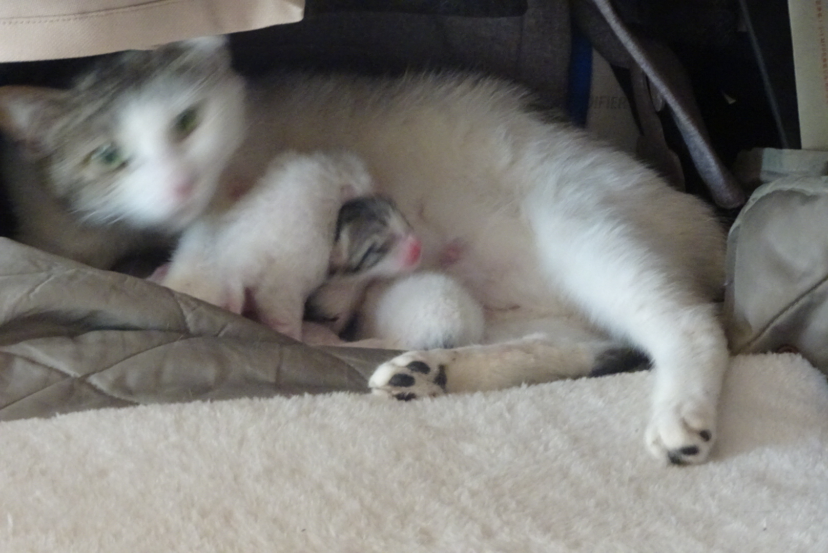 昨年10月から我が家に来るようになった野良猫ちゃんが昨晩赤ちゃんを産みました
