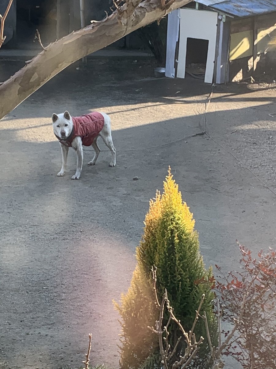 現在外飼いですが、夜間は保護主様宅敷地内の空き家の室内に用意された寝床で過ごしています。